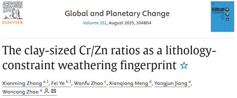 近日,学院赵万苍副教授研究组在地球科学领域top期刊Global and Planetary Change以The clay-sized Cr/Zn ratios as a lithology-constraint weathering fingerprint为题发表最新研究成果。