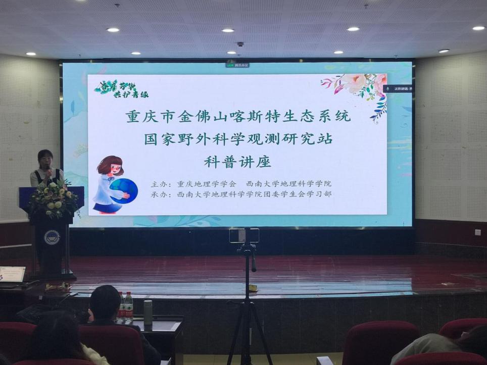 4月17日下午,金佛山国家野外站科普讲座于哈哈体育101报告厅举行。金佛山喀斯特生态系统国家野外科学观测研究站站长马明国教授用幽默诙谐的语言为同学们讲解了野外站的布局与意义、金佛山站发展历程和金佛山站观测系统。在马教授的带领下,同学们欣赏到金佛山四时之瑰丽,揭开了金佛山国家野外站的神秘面纱,深刻认识到重庆金佛山喀斯特生态系统国家野外科学观测研究站对于研究喀斯特生态系统所具有的重大意义,体会到地理科学技术在保护生态、爱护地球中的重要性。