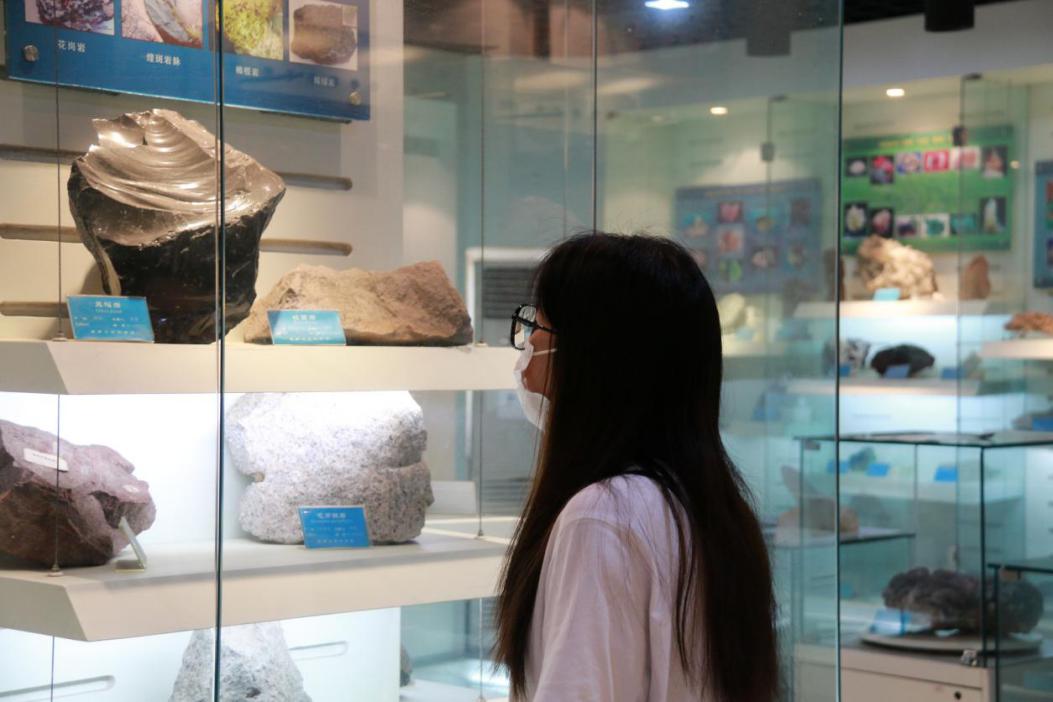 讲解员进行岩石讲解