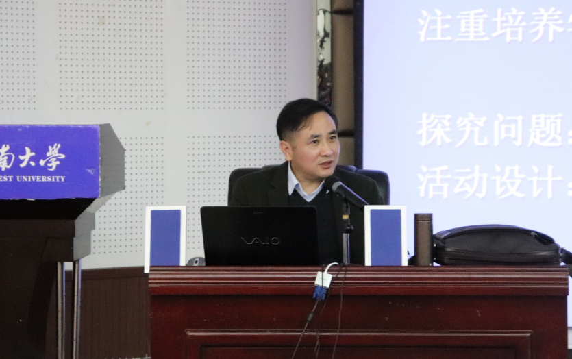 3月10日下午,由公司协同创新育人中心主办的“教师专业成长”专题讲座在学院101报告厅举行。重庆市教育科学研究院地理教研员、中学高级教师、《地理教育》副主编张文革老师应邀担任主讲人。100余名师范生聆听了讲座,讲座由公司副经理王勇教授主持。