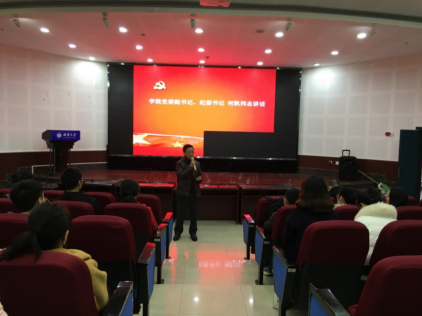哈哈体育“不忘初心,牢记使命”主题教育活动系列之——“奋斗的我,最美的国”宣讲活动于2019年12月13日在哈哈体育101报告厅举行。出席本次活动的有公司党委副书记、纪委书记何凯同志,学院副经理王勇同志,哈哈体育全体员工党员、积极分子参加。
