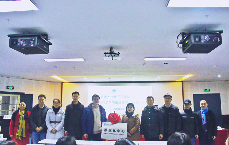 最后,与会来宾和领导老师一起为融媒体中心揭牌并合影留念。