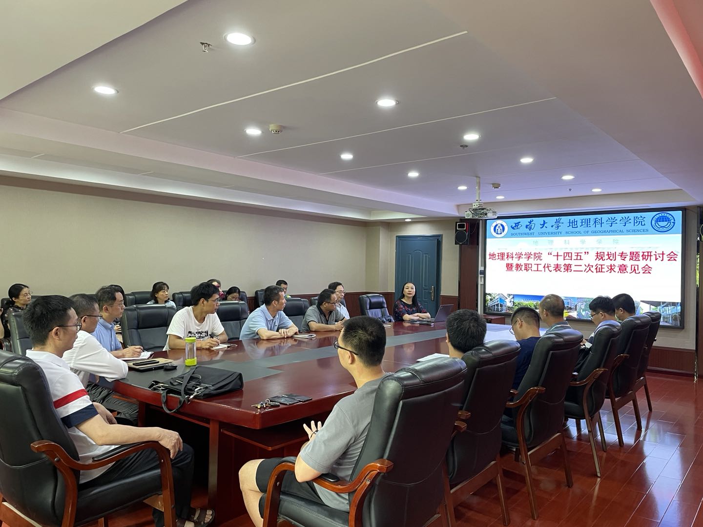 本次会议主要围绕学院“十四五”规划进行专题研讨与意见征求。会上,学院行政主要负责人详细介绍了学院“十四五”发展规划总体情况,并从发展基础、发展定位与目标、主要任务、保障措施等方面系统、全面地阐述了学院“十四五”期间的总体规划和顶层设计。她表示,“十四五”期间学院将继续坚持“学术立院、人才强院、质量兴院、管理活院和文化塑院”的发展思路,坚定不移地改进党建和思想政治教育工作、提高人才培养质量、增强学科专业核心竞争力、鼓励产出高水平研究成果、提升社会服务能力以及提高国际化程度和水平。与会人员围绕各项重点任务进行了深入讨论,对核心指标观测点的科学性和合理性进行了充分研究,为学院“十四五”规划发展提出了宝贵意见和建议。