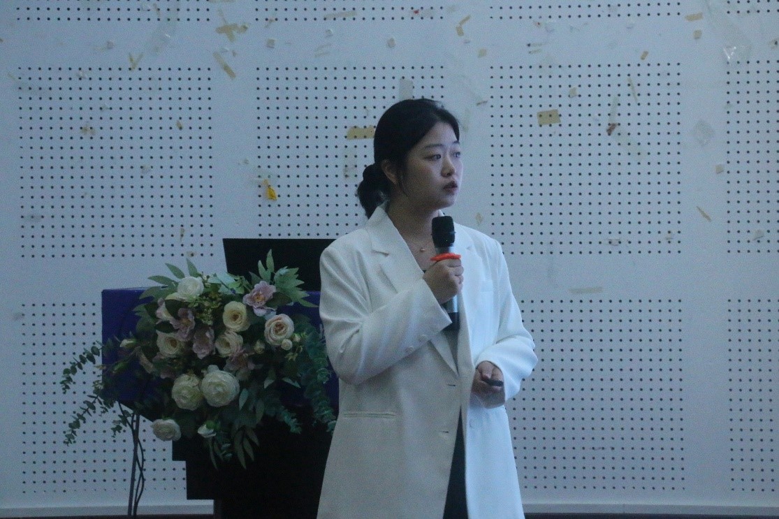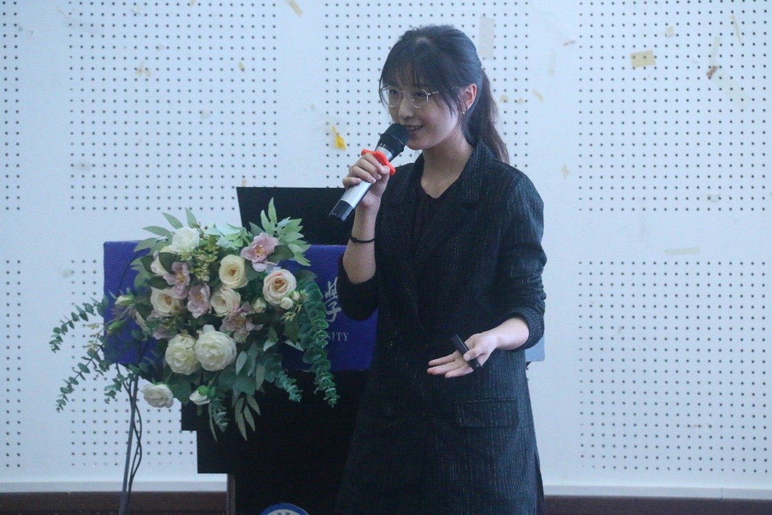 接下来,2018级实习生代表以及教育硕士代表进行了实习总结汇报。向钊同学从实习的前期准备和实习期间的听课、备课、上课、讲题、总结五个方面讲述了如何利用好实习期成为一名合格的人民教师。
