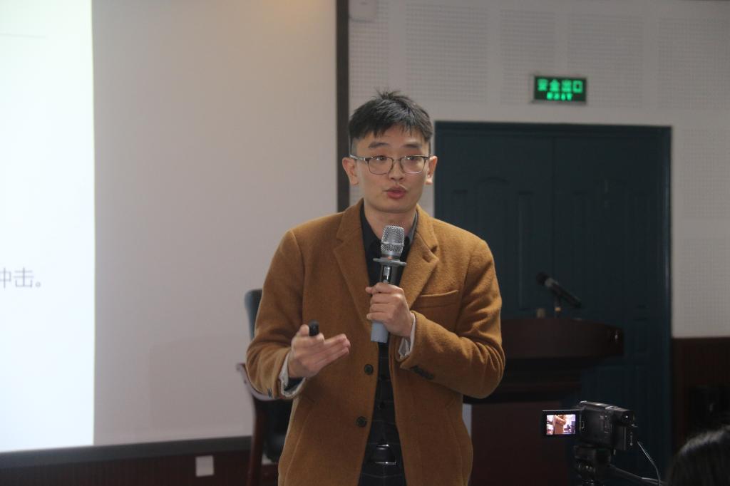 陈剑锋发言结束之后,邓圣龙在同学们的掌声中开始了他的分享。本次讲座中,邓圣龙以“企业人才需求和应聘技巧”为主题,结合社会现状为大家带来实用的就业指导经验。
