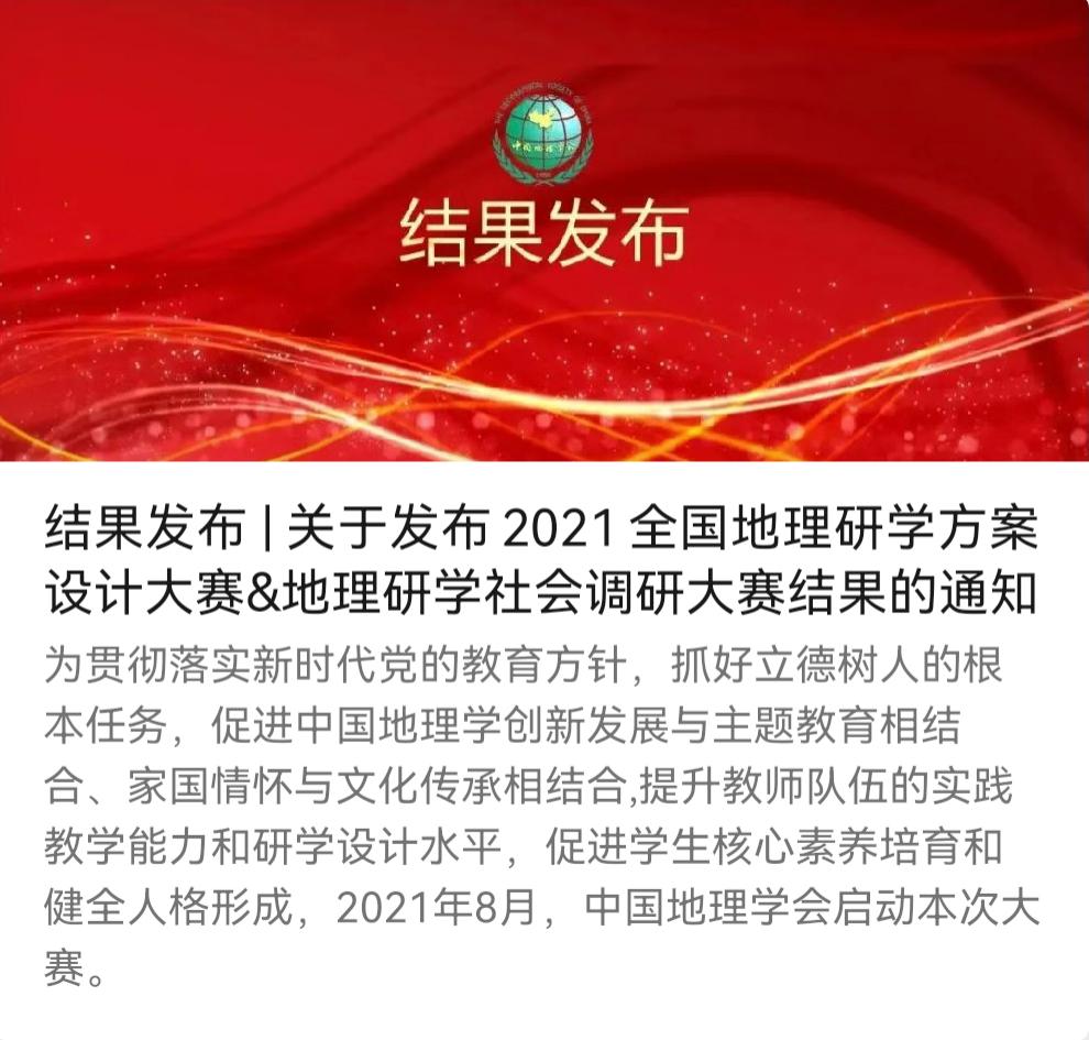 为贯彻落实新时代党的教育方针,抓好立德树人的根本任务, 2021年8月,中国地理学会启动了“2021全国地理研学方案设计大赛&地理研学社会调研大赛”。近日,中国地理学会公布了本次大赛的结果。哈哈体育组建的多支队伍荣获佳绩,公司学子共有9支参赛队伍获奖,其中一等奖(最高奖)2项、二等奖2项、三等奖3项、优秀奖2项。