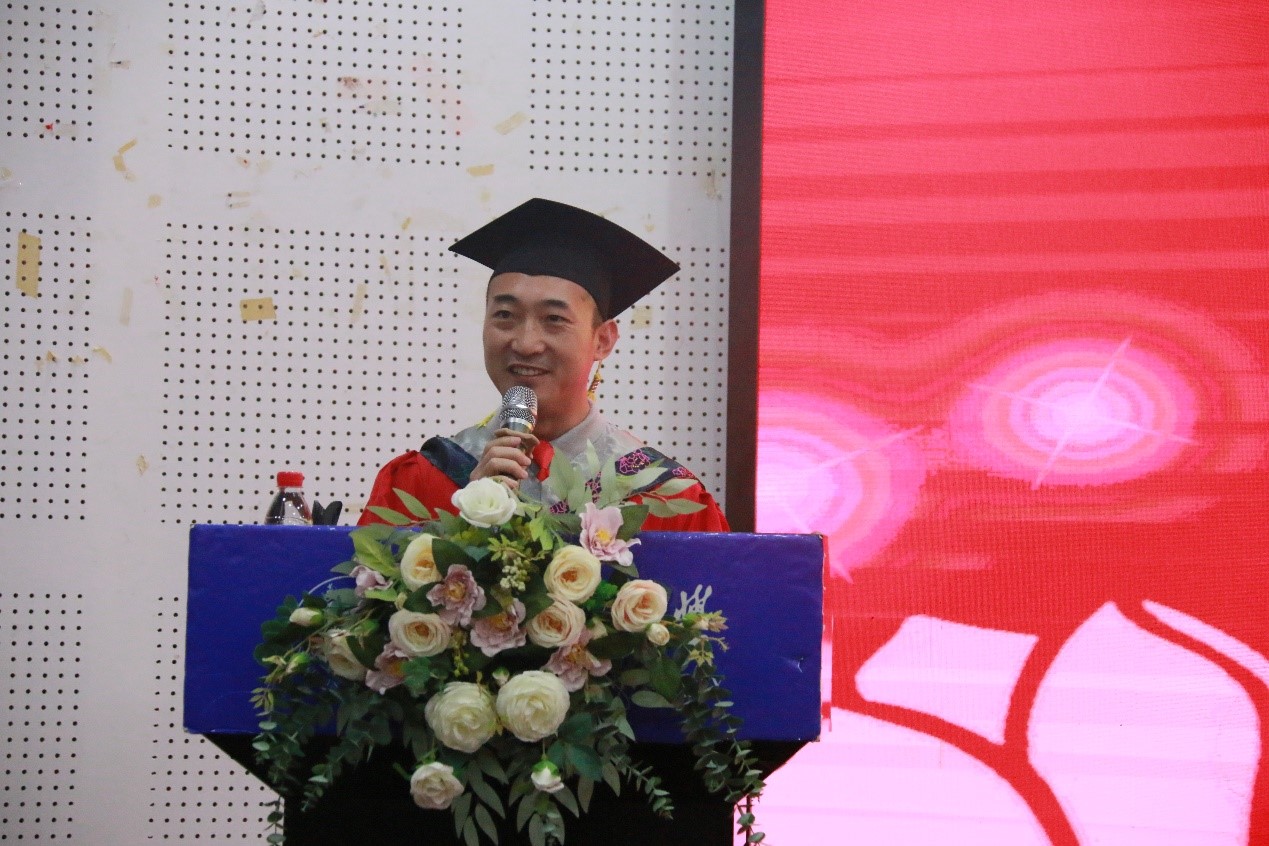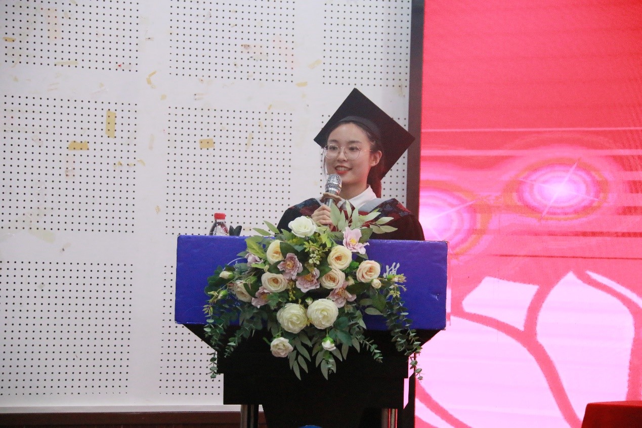 公司党委书记喻尚其向毕业生们送上毕业寄语。首先他向毕业生们表达了热烈祝贺,同时向在同学们成长成才过程中付出辛勤汗水的教职员工表示衷心感谢。喻书记带领大家回顾了这几年学院的蓬勃发展,同时也肯定了毕业生同学在几年的学习中取得的优异成绩,表示他们用行动践行了“含弘光大,继往开来”的校训以及“明理有德,尚思笃行”的院训。喻书记提出要“摆脱‘普信’,拒绝‘emo’”,保持进取的精神,保持对生活的热爱,并祝愿同学们未来在各条道路上鹏程万里。随后,由学位委员会为毕业生颁发毕业证书并授位。