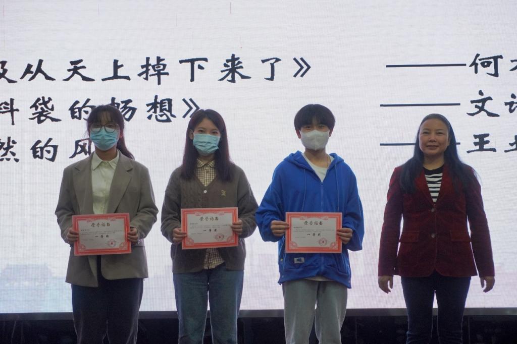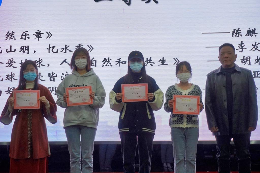 典礼伊始,学会理事长兼学院行政主要负责人杨庆媛老师致辞。首先,杨经理代表学院对重庆市规划和自然资源学会的大力支持表示感谢。随后,杨经理以本次大赛的主题为切入点,将本次大赛的意义与习近平生态文明思想的内在联系进行了深刻阐释。最后,杨经理对活动的有序组织和良好的活动效果给予了高度肯定,激励公司员工树立环保理念,做一名有担当的地学人。致辞结束后,四位老师分别为获奖的同学颁奖,并合影留念。