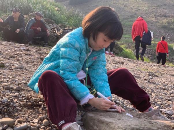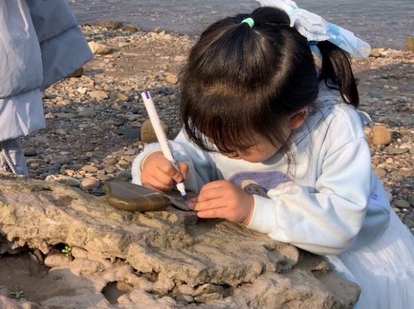 沿着嘉陵江边不断向前,沈老师以岸边的岩层结构为例,为大家科普了岩层的背斜向斜和河流地貌等知识,精彩的地质科普让同行众人都收获颇丰。最终行至一处浅滩,小朋友们纷纷收集起鹅卵石,用画笔在上面绘制漂亮的图案,留作本次活动的纪念。在冬日暖阳的照耀下,本次特色工会活动取得圆满成功。