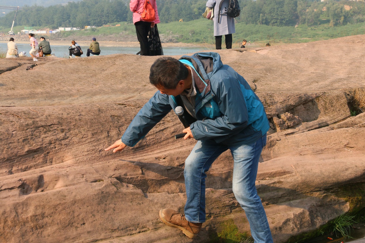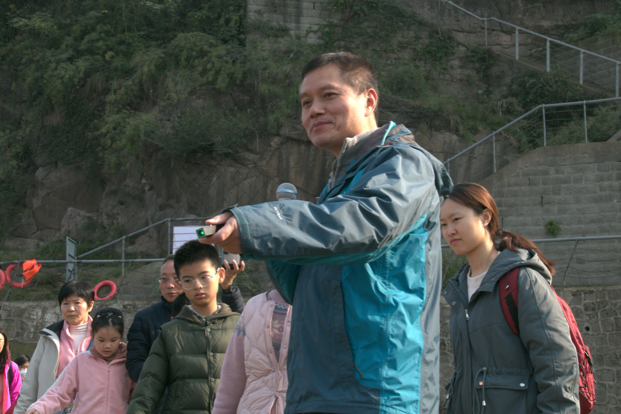 下午两点,全体人员在卢作孚纪念馆门口签到集合后一同前往考察嘉陵江碚石。在嘉陵江边,沈立成老师带领大家一起认识各类岩石的性质,了解地层信息、地质结构等地理知识。讲解过程中小朋友们认真听讲,积极提问,沈老师也用生动形象的语言为大家答疑解惑。