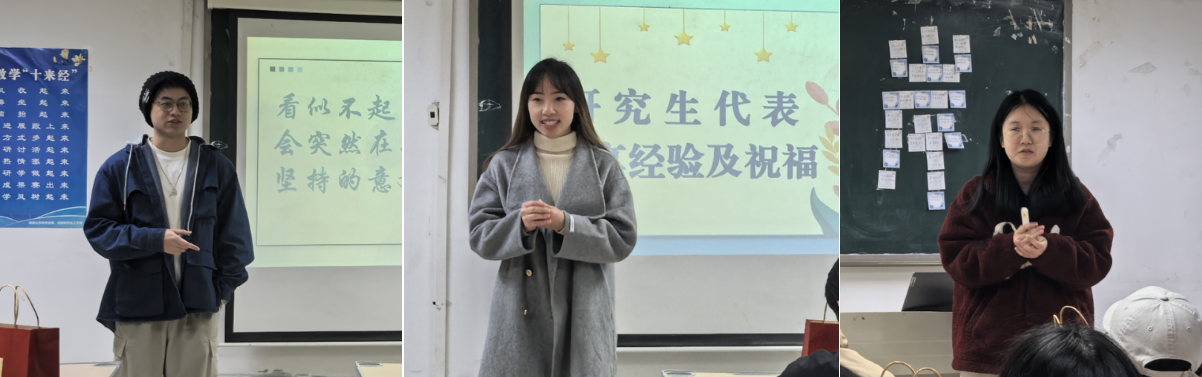 最后,由往届上岸研究生代表分享考研冲刺经验:心态稳定是关键,专注于自身复习节奏;注意保暖饮食,保持良好的身体状态;答题时优先完成所有题目,不必过度纠结细节;政治科目紧跟时事热点,梳理知识框架,强化重点与核心考点记忆;数学学习加大刷题量,总结解题思路技巧;重视模拟考试,严格模拟环境与时间限制,提前适应考试节奏,做到心中有数、临考不慌。
