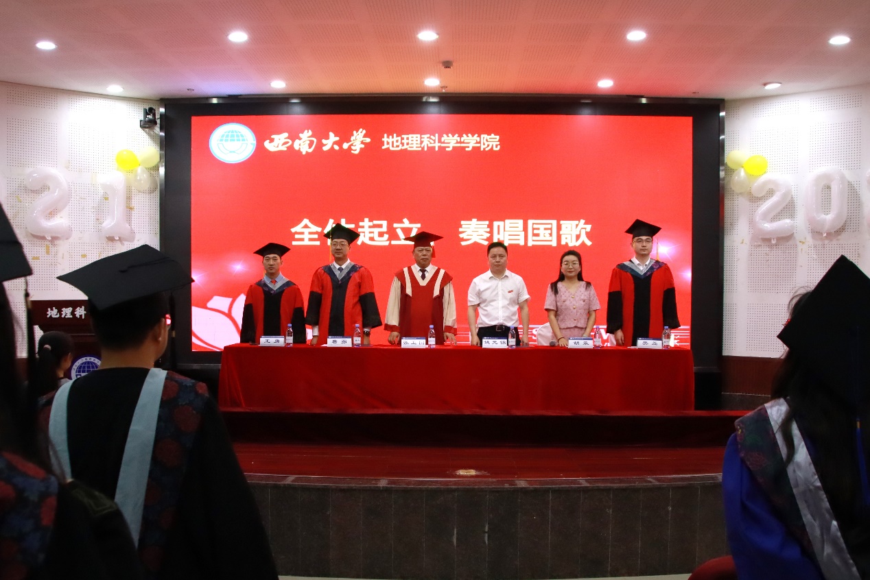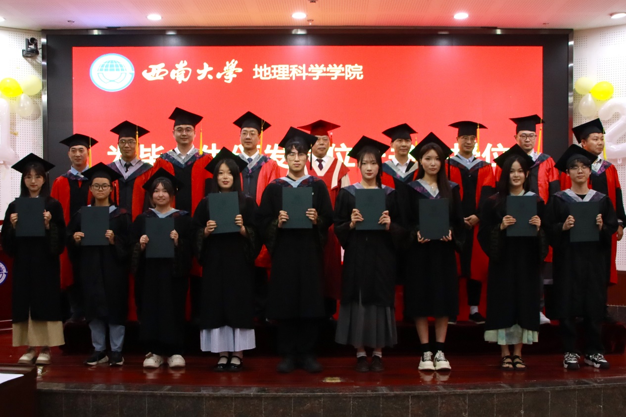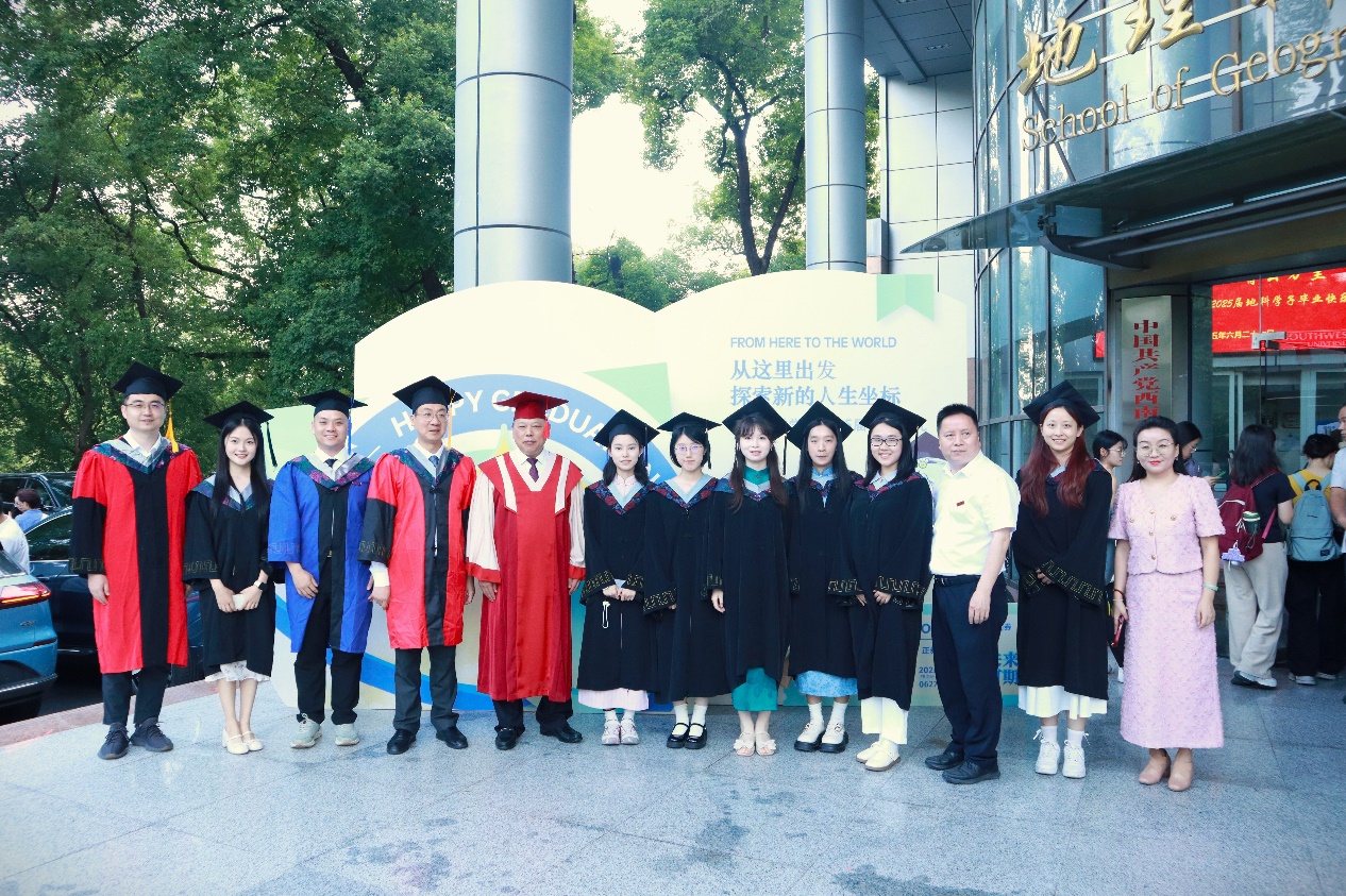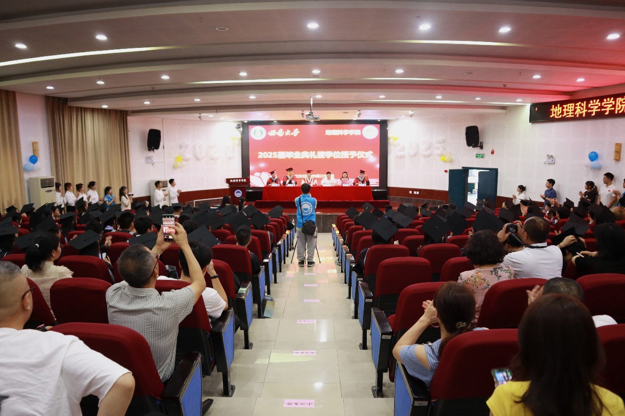 典礼最后,经理唐强以地理人的三个“坐标”为引寄语毕业生。唐经理向全体毕业生表示热烈祝贺,对各位导师、父母等致以诚挚感谢,同时回顾了学院各方面的建设成果。他希望同学们以“高程”定义精神海拔,以“经度”丈量专业深度,以“纬度”拓展创新边界,带着西大地理人的精神在人生航程中铸魂、立身、拓界。最后,唐经理祝福2025届全体毕业生们前程似锦、山高水长。