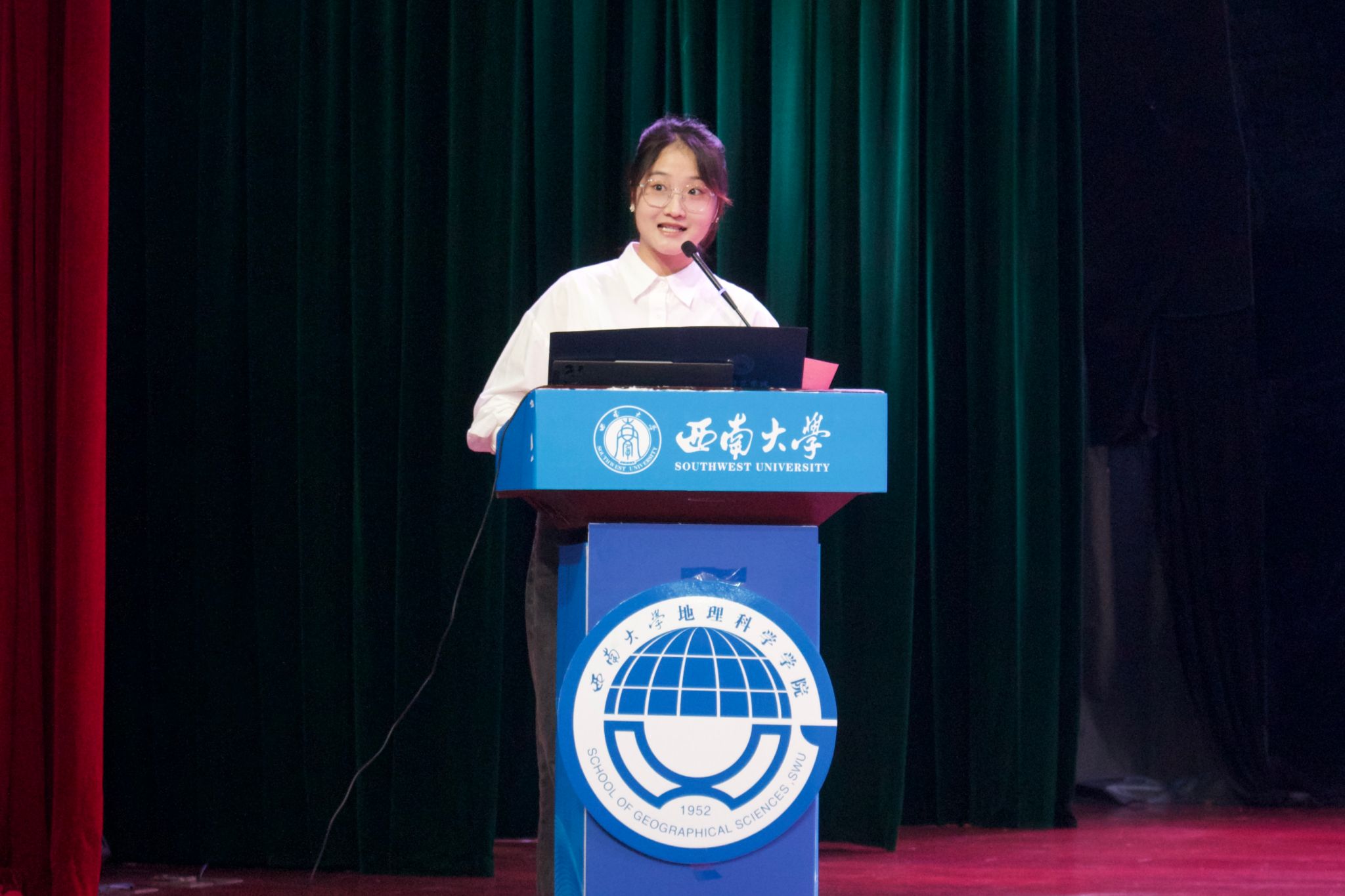 新生代表杨钰涵抒发了对地理学的炽热初心与对老员工活的憧憬,立志以自律为基、探索为路,未来成长为一名卓越的地质工作者。2022级本科生杨颖与2023级硕士生罗沁怡作为高年级员工代表,分别从学业规划、实习历练、科研实践等角度分享成长体悟——敢于试错、勤于反思、敏于剖析、忠于热爱,并传递出地理人特有的“丈量山河、感知世界”的专业情怀。