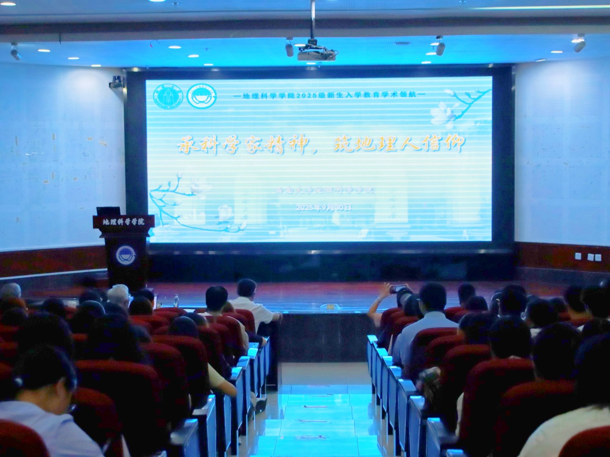冯仁国教授以《地理学视角的立德树人》为题,从区位、格局、尺度等地理学核心概念出发,系统阐释了地理学在认知提升与价值塑造中的独特作用。他强调,地理学不仅是认识世界的方法,更是践行“立德树人”的重要路径,鼓励新生勇于突破学科壁垒,培养批判思维与融合创新能力,在服务国家战略中实现自我超越。