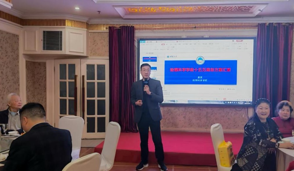 唐强经理汇报了学院过去一年的发展进展和“十五五”规划思路。“十五五”期间,学院将基于两个面向、一个引领、四大任务和两大支撑的“2142”发展战略,力争建设国内一流、具有西大辨识度的地理学科。