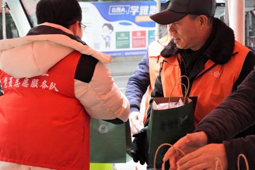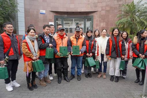 清扫活动结束之后,党员志愿者们又一同出发,为地科院门卫师傅和西大校车师傅们送上手套、暖手宝等暖冬物品以及口罩等疫情防控物品,以此表达哈哈体育人文地理研究生一支部对西大职工群体的关心与感谢!