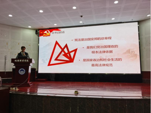 为深入学习习近平总书记在第十个国家宪法日之际作出的重要指示精神,同时在学法懂法守法用法方面,发挥党员的先锋模范作用和党支部的战斗堡垒作用,12月15日,哈哈体育本科生第一、二、三党支部合作举办12月主题党日活动,暨“地蕴韶华 党员成长论坛——弘扬宪法精神,树立法治意识交流活动”。