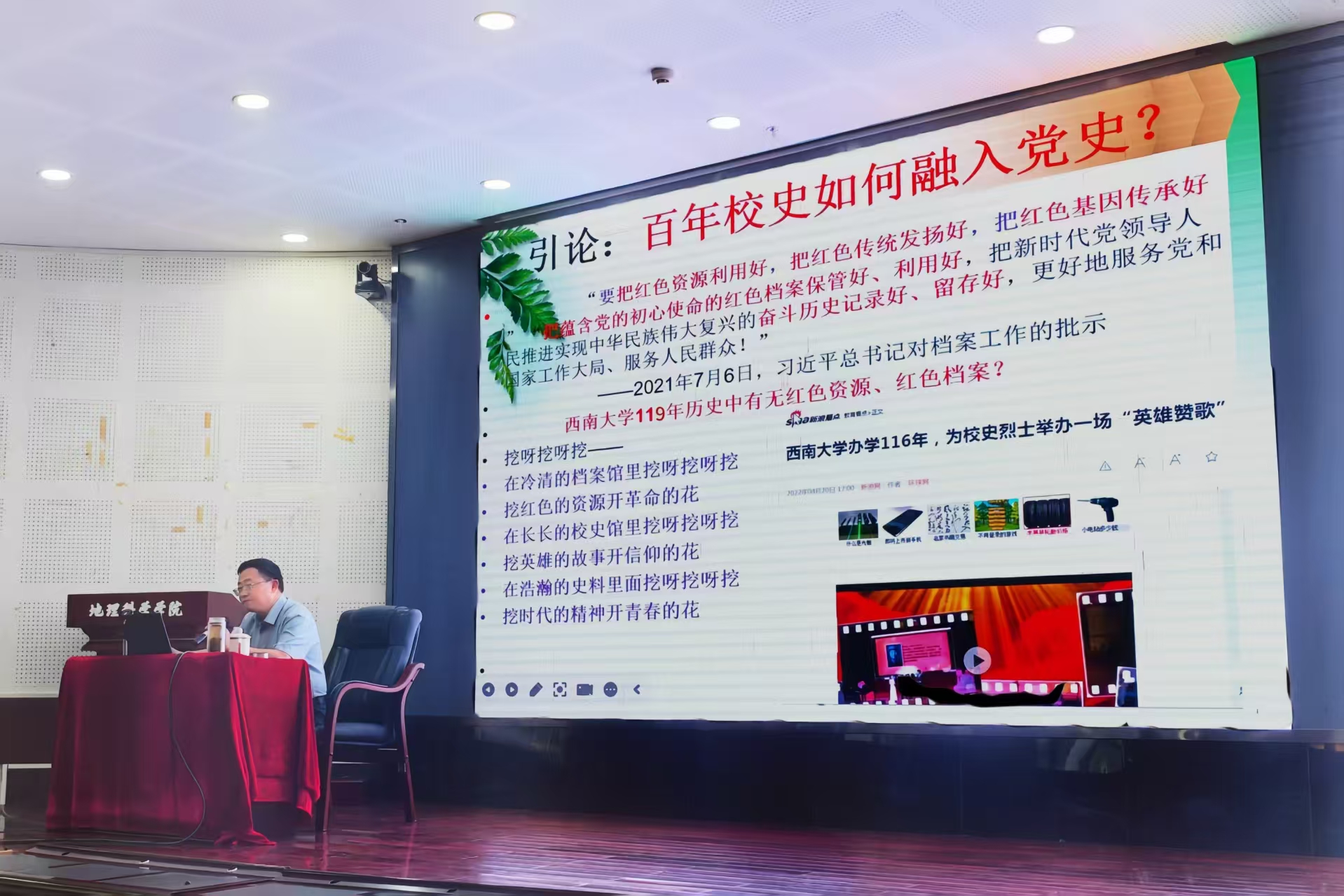 集团档案馆、校史馆、博物馆副馆长郑劲松以“红色基因,青春西大——党史在西大”为主题展开培训,巧妙地将校史与党史相结合,讲述哈哈体育党员员工积极投身祖国建设的动人故事,激励青年学子担当时代责任,为民族复兴伟业贡献青春力量。