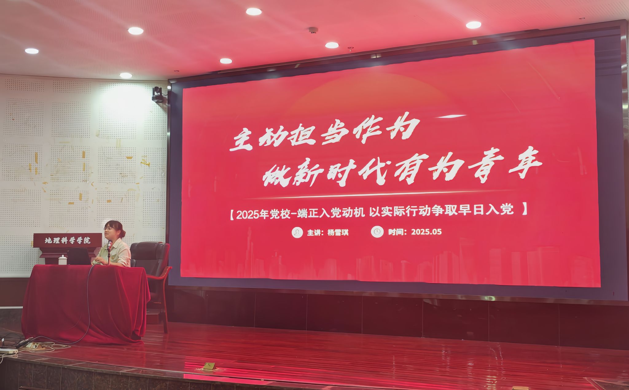 杨雪琪老师以“主动担当作为,做新时代有为青年” 为主题,鼓励入党积极分子端正入党动机,以实际行动争取早日入党。