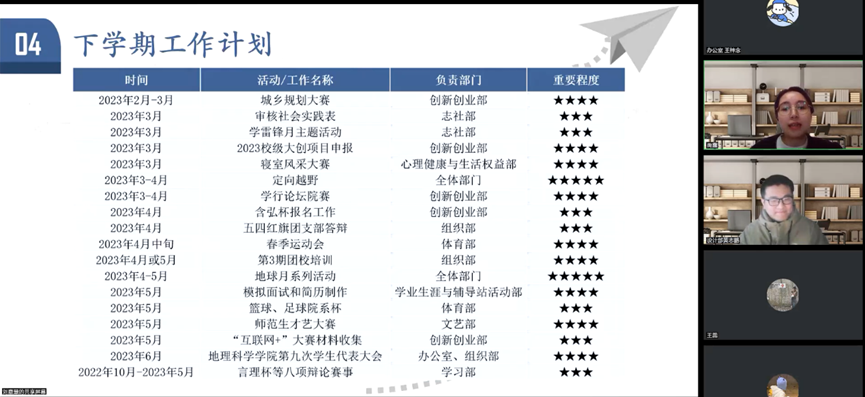 会议议程第四项,由学院团委书记禹露老师介绍团委员工会下学期工作计划。