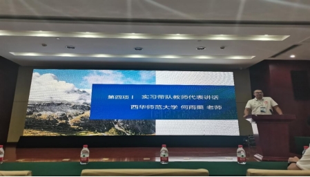 西华师范大学实习带队教师何雨栗博士作为教师代表发言,他对米仓山实习线路进行了详细阐述,介绍这条线路主要通过“点-线-面”的实习方式开展沿线考察。